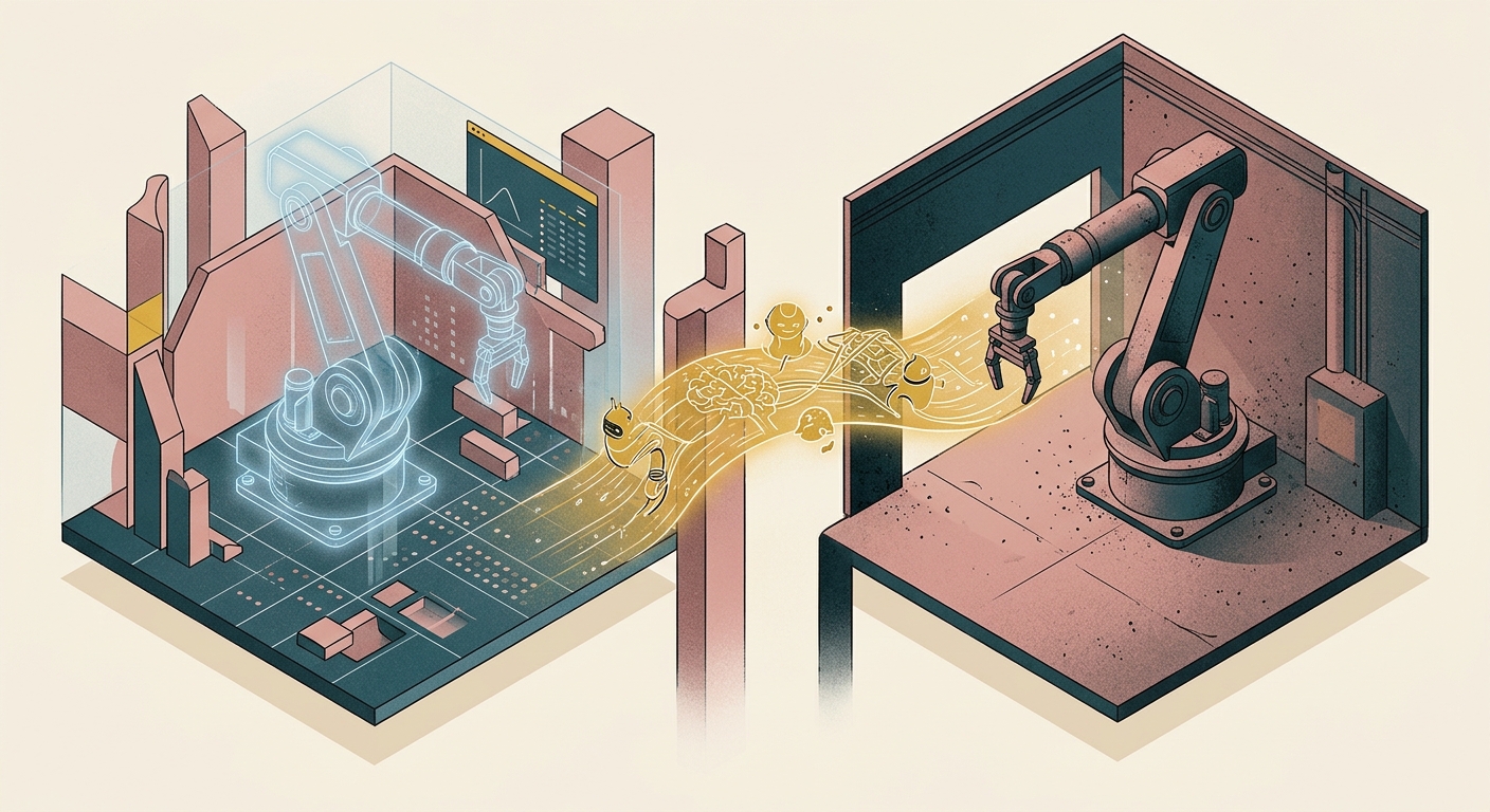 로봇을 개발할 때 연구자들이 직면하는 가장 난처한 문제가 하나 있다. 가상 환경(시뮬레이션)에서는 완벽하게 움직이던 로봇이 현실에서 제대로 작동하지 않는 현상이다. 이를 업계에서 'sim-to-real' 격차(Sim-to-Real Gap)라고 부른다.